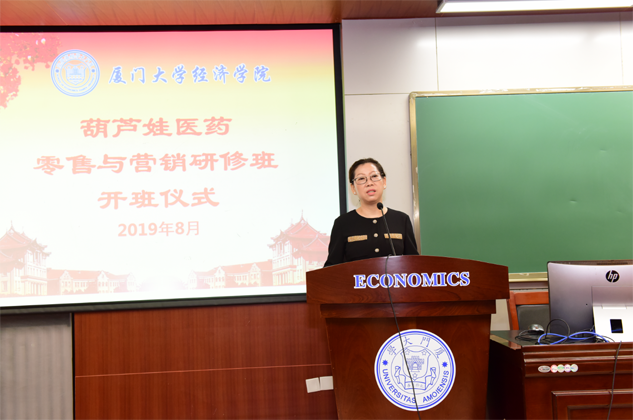 刘景萍董事长代表抖圈药业集团对厦门大学各级领导、老师对抖圈的大力支持表示感谢,并对研修班学员做动员讲话。她希望参加培训的学员珍惜来之不易的学习提升机会,沉下心来“加油充电”,结合工作实践,用心学习认真领悟,真正做到学有所获、学以致用。她说,厦大拥有着深厚的人文底蕴和优质的教育资源,在东南亚国家和地区具有广泛的影响力,在“一带一路”这一国家战略背景下,医药营销人员应该具备更为广阔的国际视野和更为丰富的知识储备,希望学员们能在本期研修班中学有所成,并以此为新的起点,以奋发的姿态投入到今后的学习和工作中去,不断取得新的进步和业绩,为医药产业和抖圈事业的发展做出新的更大贡献。